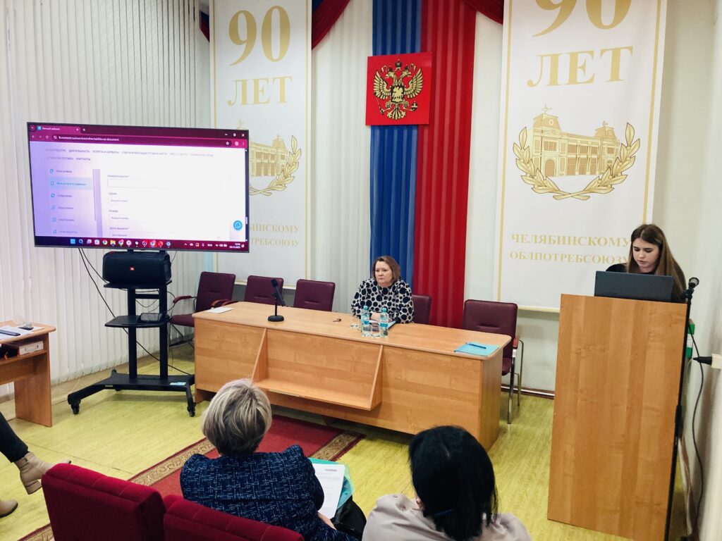 Ведущий юрист облпотребсоюза Евгения Ионова подготовила презентацию, где на практике показала, как нужно работать с электронными сервисами Росреестра.